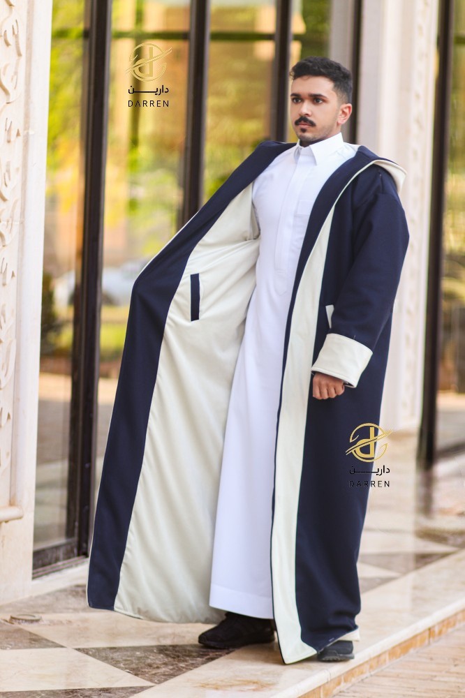 فروة بتصميم خاصمناسب للجميعمصنوعة من قماش الجوخ الفاخروجلد على الاطرافبامكانك لبسها على الجهتينلون كحلي ولون سكريصناعة يدويةالتفصيل لجميع المقاسات