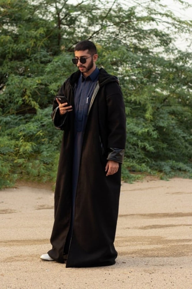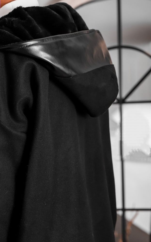فروة مصنوعة من قماش الجوخ الفاخر لون اسودوجلد على الاطرافومن الداخل فرو الارنب الناعم الصناعي لون اسودمع غطاء راسالتفصيل لجميع المقاساتالوزن : خفيف باللبس وداخليًا دافئ جدًا