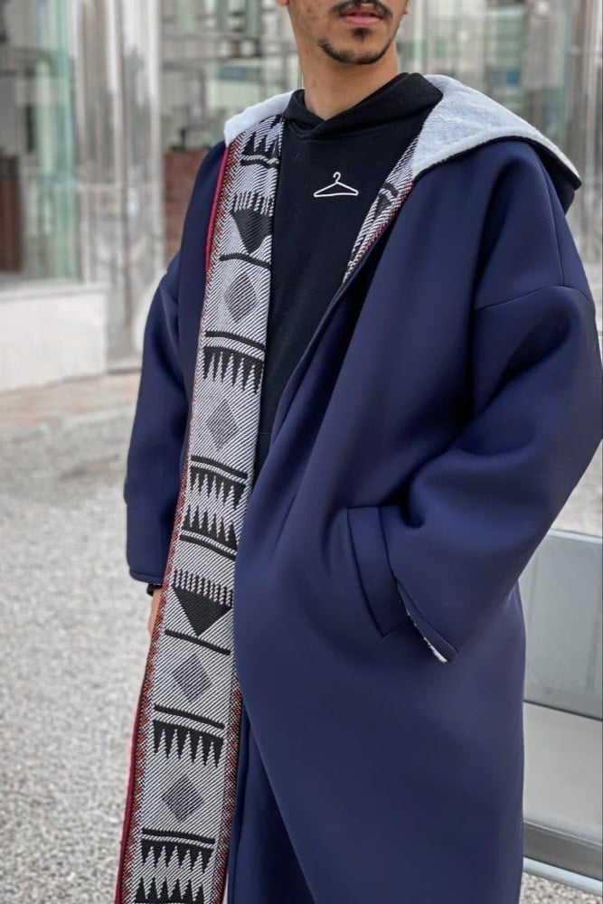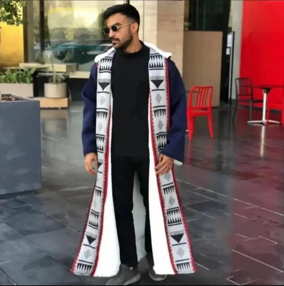فروة مصنوعة من قماش الجوخ الفاخر لون ازرقوسدو على الاطرافومن الداخل فرو الارنب الناعم الصناعيمع غطاء راسالتفصيل لجميع المقاساتالوزن : خفيف باللبس وداخليًا دافئ جدًا