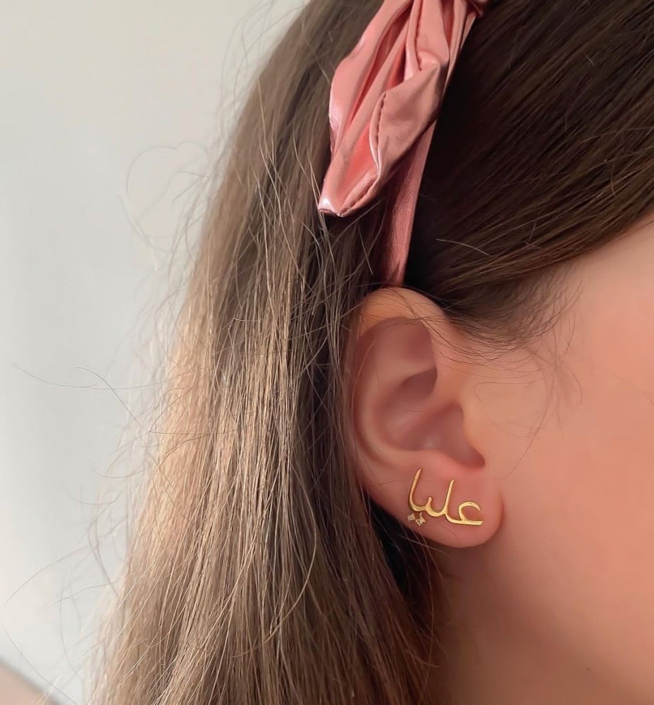 أناقة لك ولمن تحبون بالاسم 😍تفاصيل المنتج:عدد القطع 2حلق للاذنين.متوفر باللونين ذهبي او فضي.طلاء ذهب عيار 21.مضمون مايتغير لونه.تاتيكم بتغليف شيك وجميل.